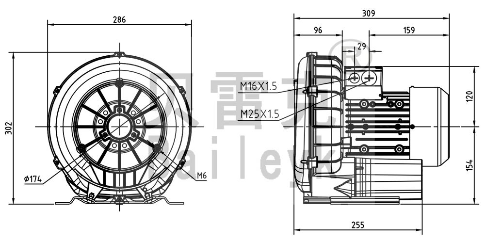最大風(fēng)量:180m3/h 最大正壓:100mbar 最大負(fù)壓:110mbar 防護(hù)等級(jí):IP55 噪音:64db 重量:17Kg