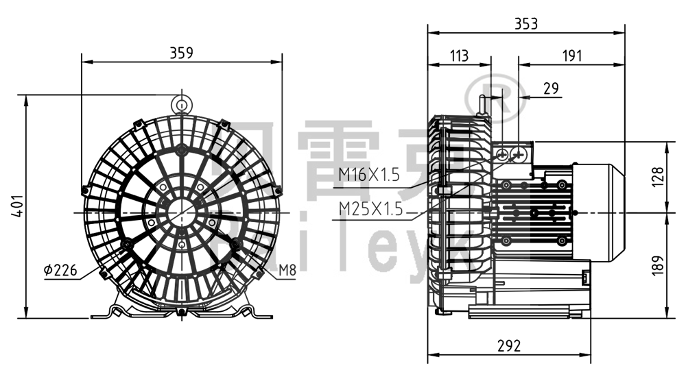 最大風量:270m3/h 最大正壓:180mbar 最大負壓:170mbar 防護等級:IP55 噪音:67db 重量:24Kg