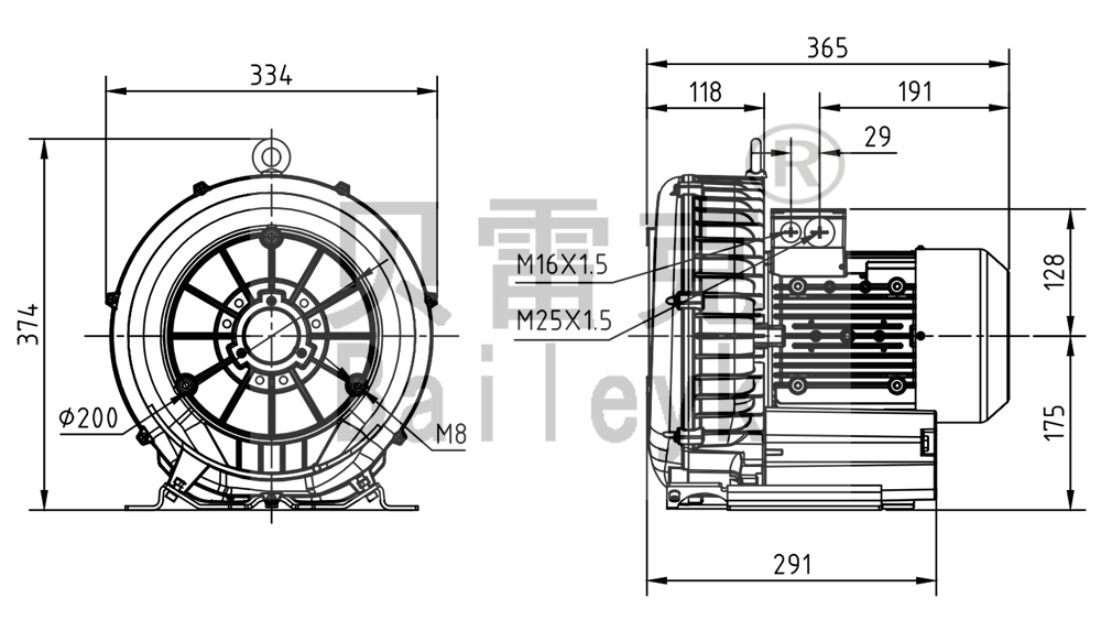 最大風量:270m3/h 最大正壓:230mbar 最大負壓:220mbar 防護等級:IP55 噪音:65db 重量:26Kg